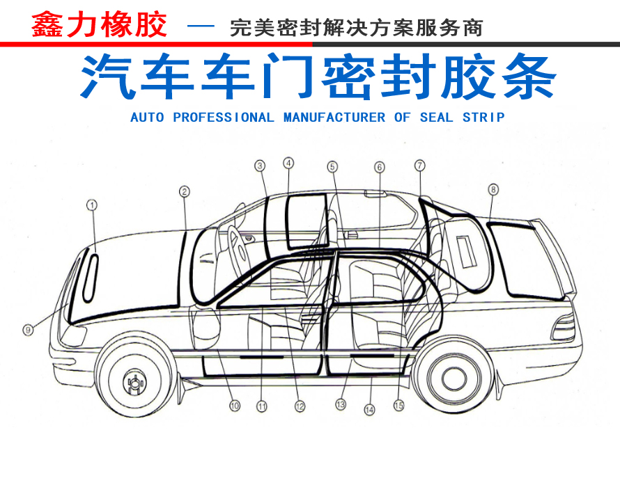 2. 汽車密封條應(yīng)用在車門、車窗、前后檔風(fēng)玻璃、天窗,發(fā)動機(jī)蓋和行李箱蓋上,起到防水、防塵、隔音、隔熱、減震、裝飾的作用。